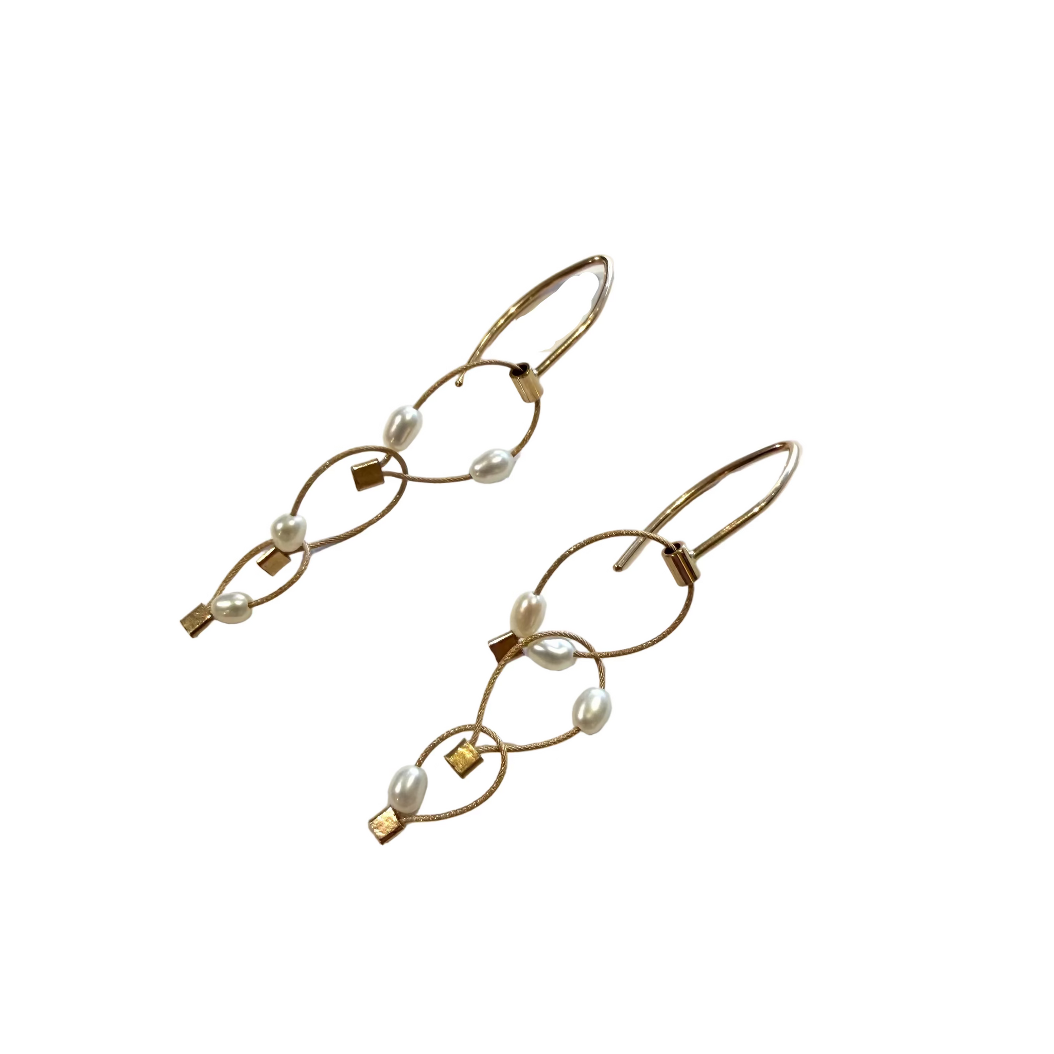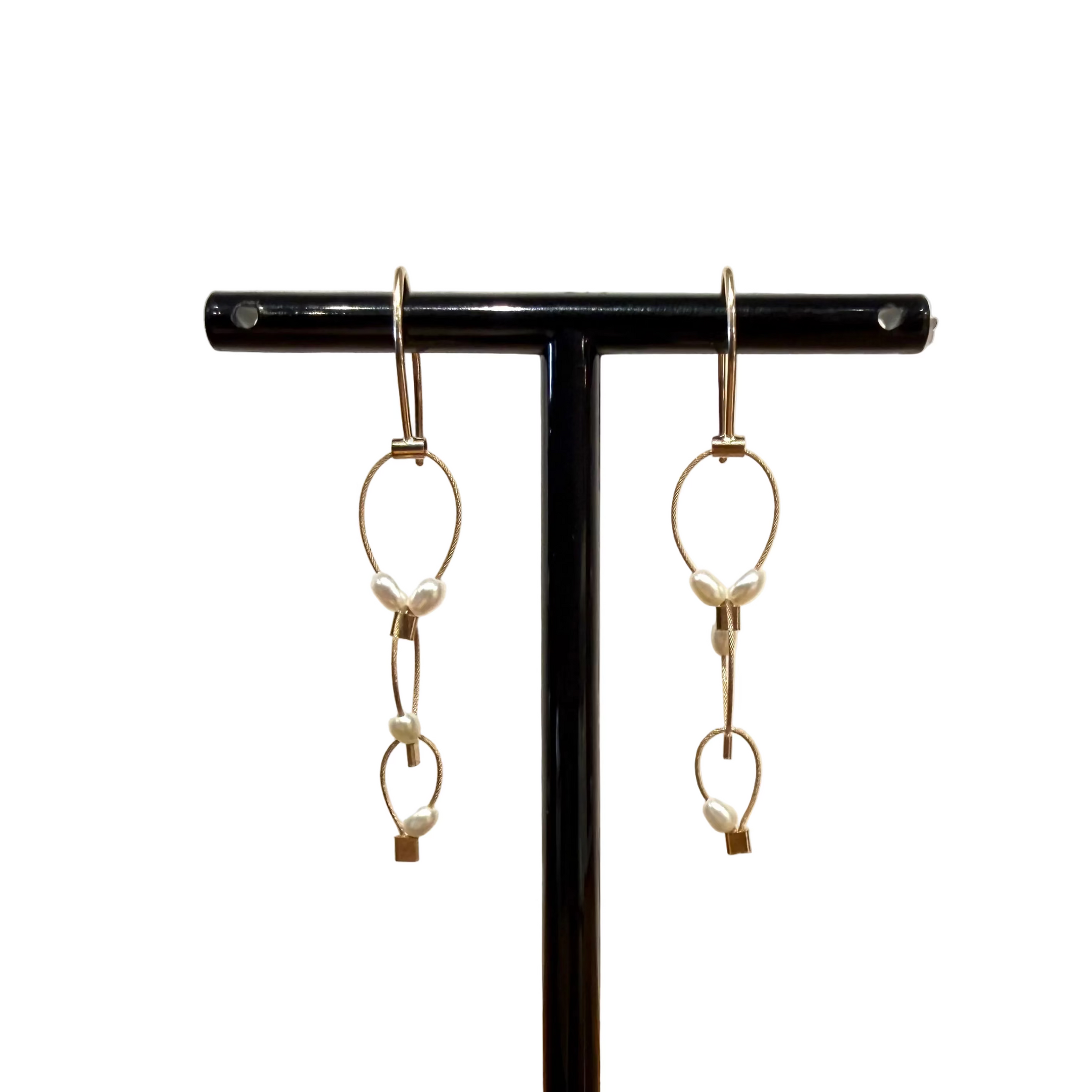 Flexible, light woven stainless steel mini cable finished with nylon for a smooth feel. Each piece is hand-finished with little accents of sterling silver and/or 14k gold-filled as well as a choice of semi-precious stones. Posts or hooks are 14k gold filled or sterling silver. Hypoallergenic materials. Travel-Friendly with metal memory (the pieces are collapsible and can return to shape after a crushing).
