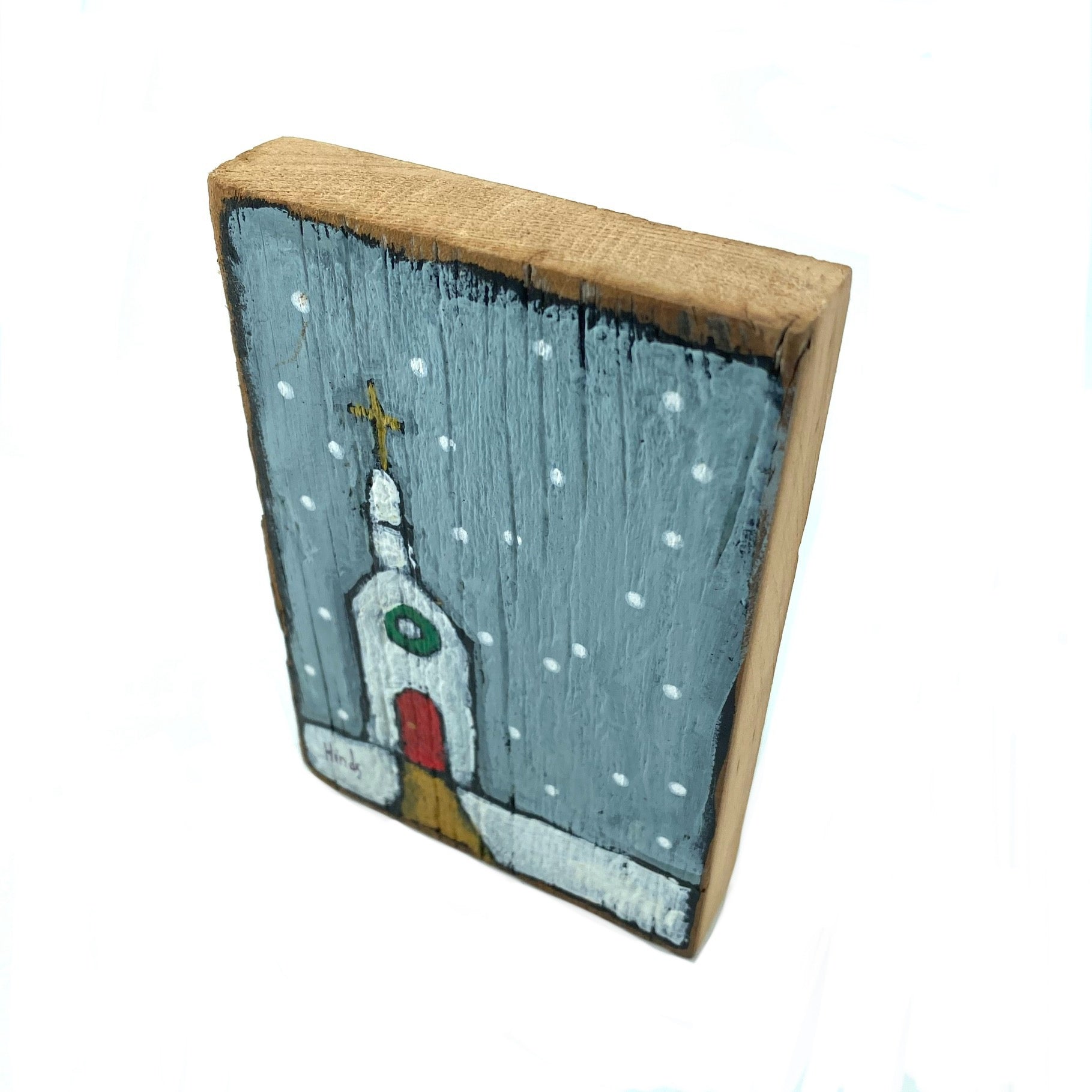 Original painting on a reclaimed wooden block by David Hinds of Springfield, Illinois.