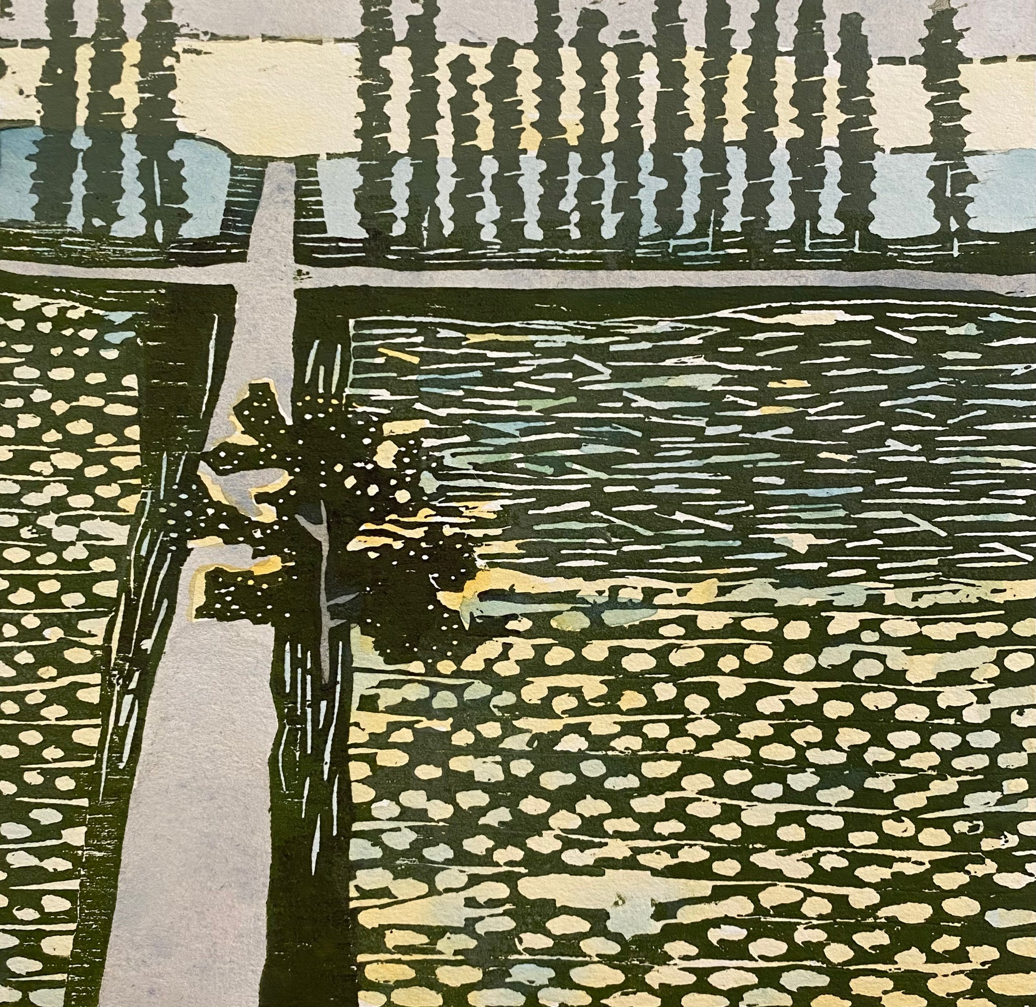 While I spent most of my working life as an architect, returning to my first love of painting was not a major reinvention. A basic need to make things has always been my directing force. It could be a building, a set of shelves, a garden, a prairie, a painting, or a woodblock print. Of course, buildings are almost always a collaboration among many people: owners, architects, carpenters, craftspeople, etc. I've learned that my personality is better geared toward solitary pursuits, and I like to have both the control and the burden of being the sole creator of what I make. So, artwork has proved to be more fulfilling for me than architecture.
