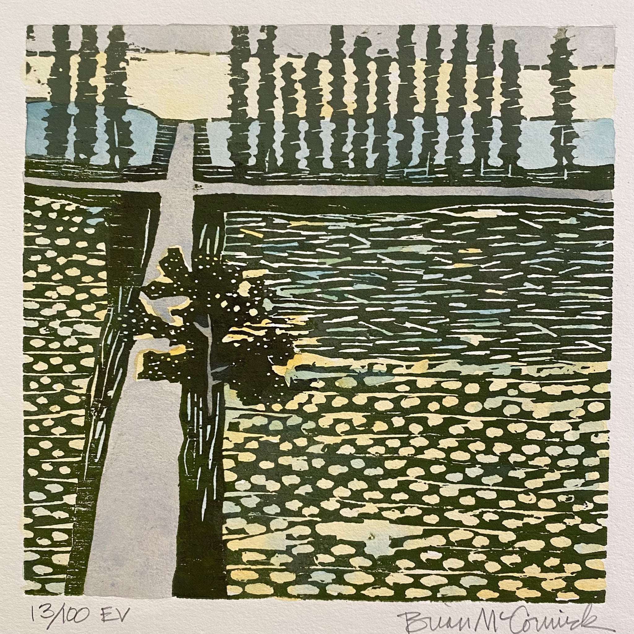 This woodblock print with added watercolor was handmade by Brian McCormick of Madison, Wisconsin.