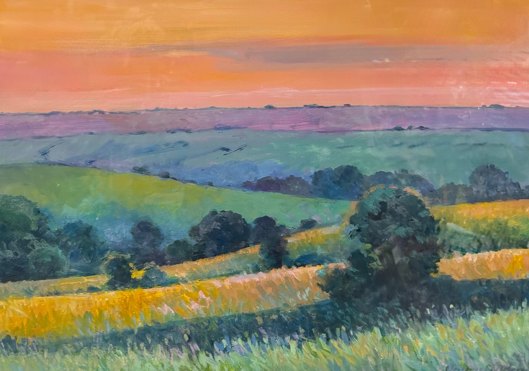 Today Nancy Lindsay is inspired by the landscape "whether it is the endless Nebraska horizon, the deep woodlands and river valleys of Iowa, or the rugged Mediterranean coastline. I prefer to paint on location (en plein air) and complete a painting in one session (alla prima)."