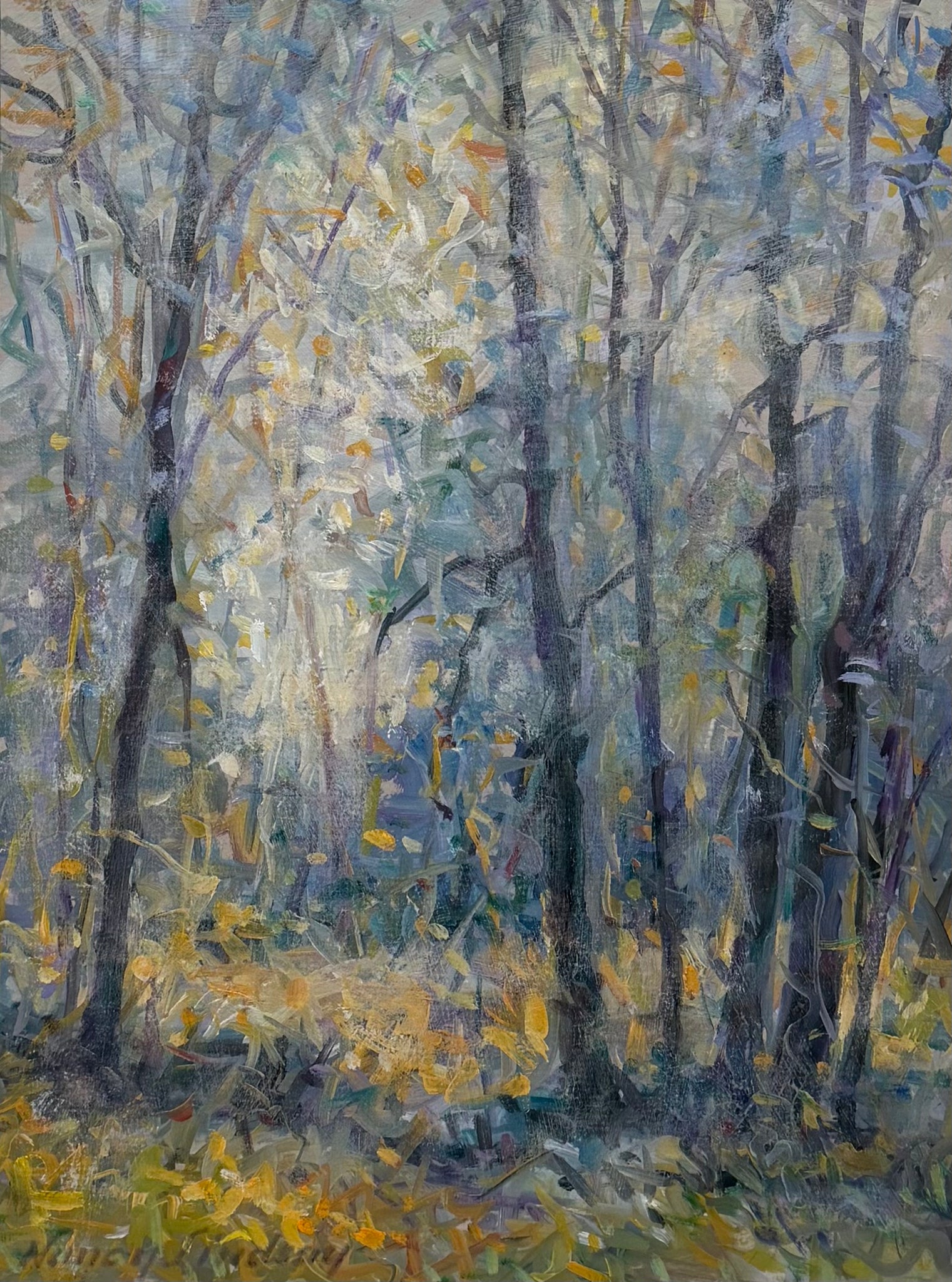 Today Nancy Lindsay is inspired by the landscape "whether it is the endless Nebraska horizon, the deep woodlands and river valleys of Iowa, or the rugged Mediterranean coastline. I prefer to paint on location (en plein air) and complete a painting in one session (alla prima)."