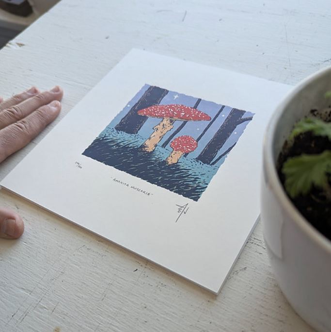 Amanita Muscaria Silkscreen Print by Allison and Jonathan Metzger