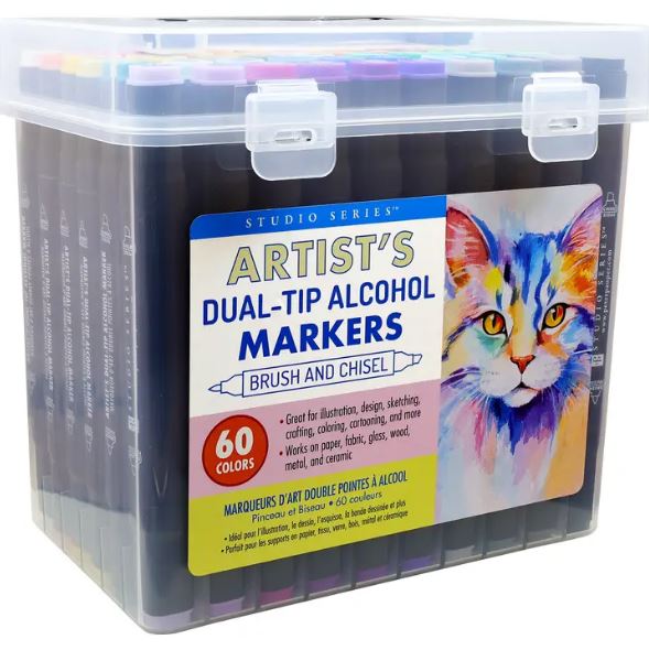 Versatile set of alcohol markers contains an expansive palette of 60 colors, from subtle hues to vivid brights!