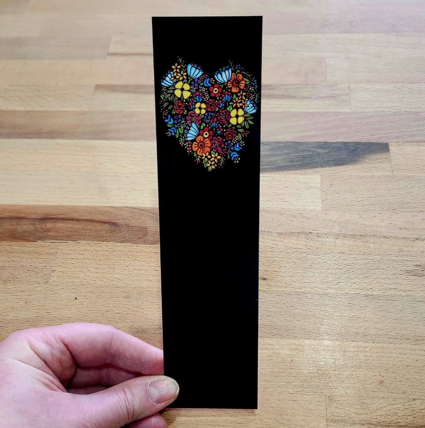 This 2" x 8" bookmark features an image from an original linocut by Sarah Angst of Bozeman, Montana. Printed on heavy cardstock with a slightly glossy finish. Art on the front, blank on the back.