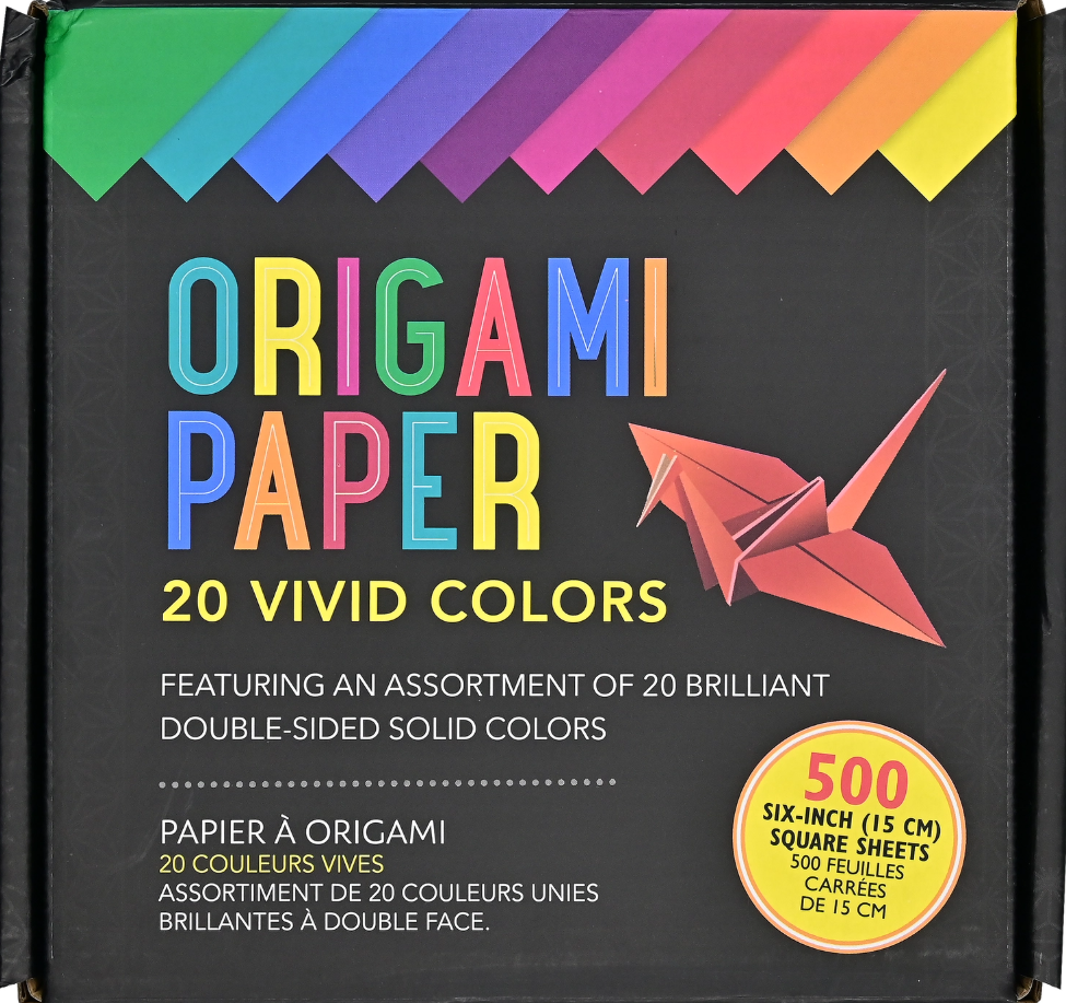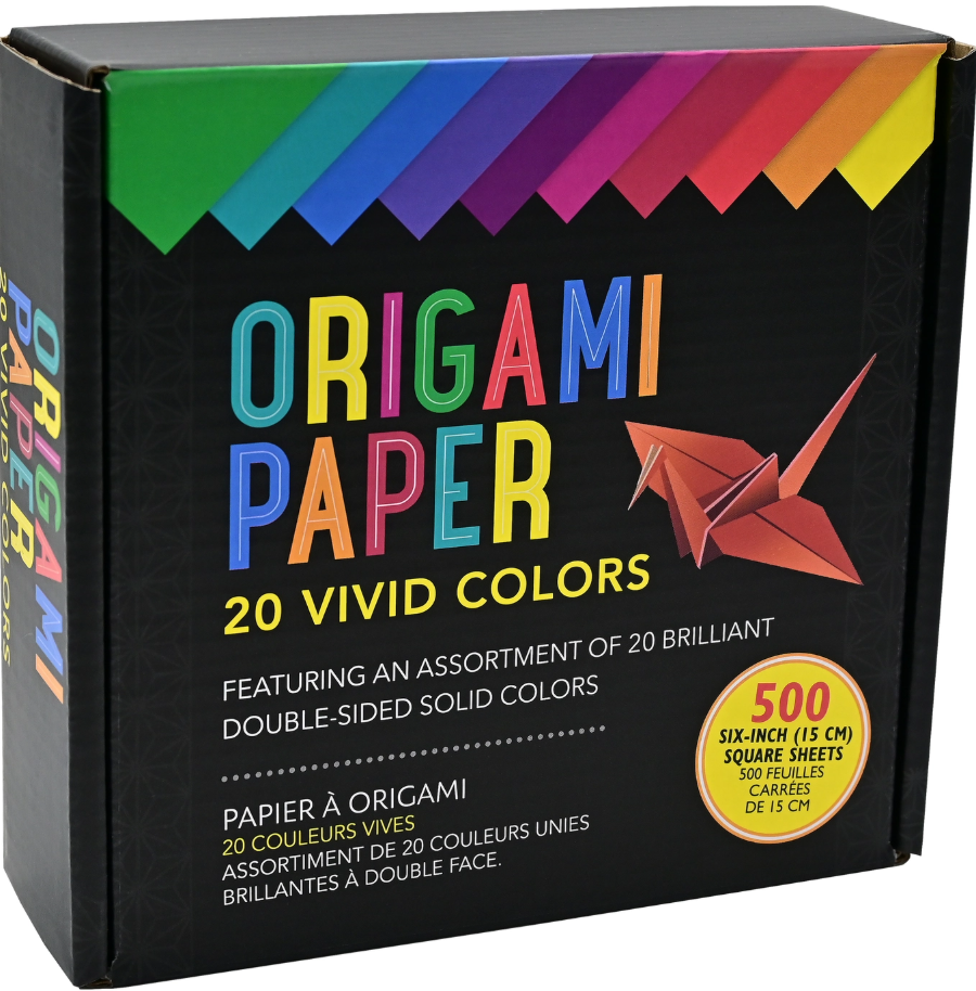 Vibrant, specially designed paper is the perfect weight for easy folding and durability. Paper comes in 20 different brilliant double-sided solid colors. Boxed set includes a booklet with instructions for making 6 classic origami projects: a boat, a crane, a fortune teller, a pinwheel, a flower, and a box. Discover, explore, and enjoy this ancient art form! Set comes in a sturdy laminated box that safeguards your origami paper as you use it. 500 sheets in all. Each sheet measures 6'' square.