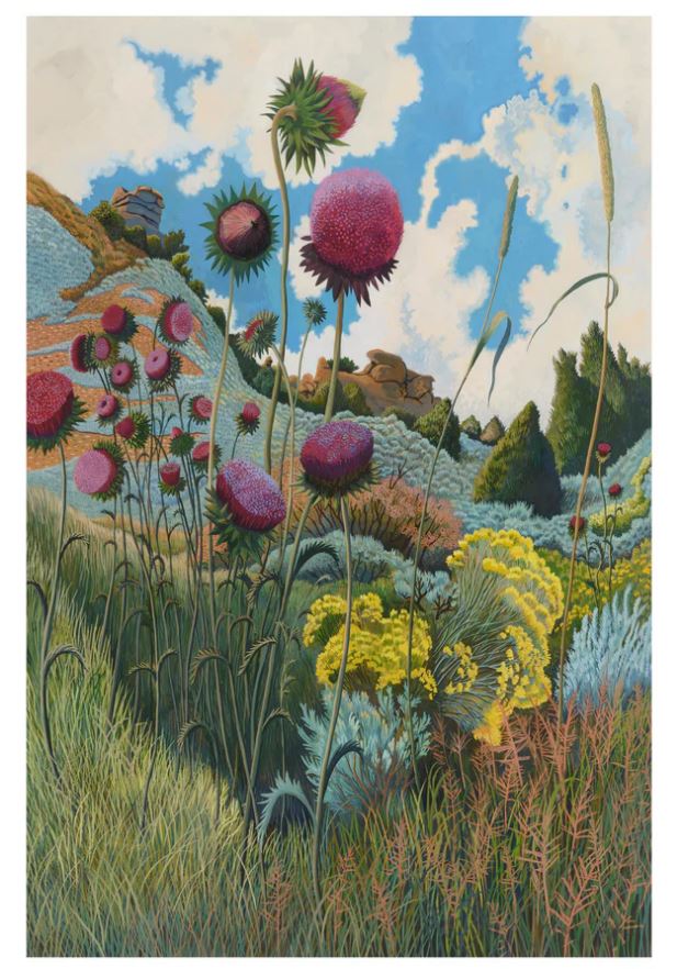 My method is to paint directly from the natural environment. This allows me to study my subject in its rawest incarnation and to better perceive and record the particular idiosyncrasies and beauty of the natural form. The unique qualities afforded by paint furthers the process of interpretation that hopefully brings about the necessary metamorphosis revealing the inner spirit of the subject. As a plein air landscape painter, I search for compositional arrangements that lend themselves to narrative possibilities. I am especially interested in the pantheistic quality of high altitude vistas juxtaposed to the intimate microcosm of the flora and fauna. These explorations of spatial extremes, for me, refer to the relationship between “world” and “self.” By probing beneath surface appearances, I try to reveal a nature that relates to bodily and psychological states of being.