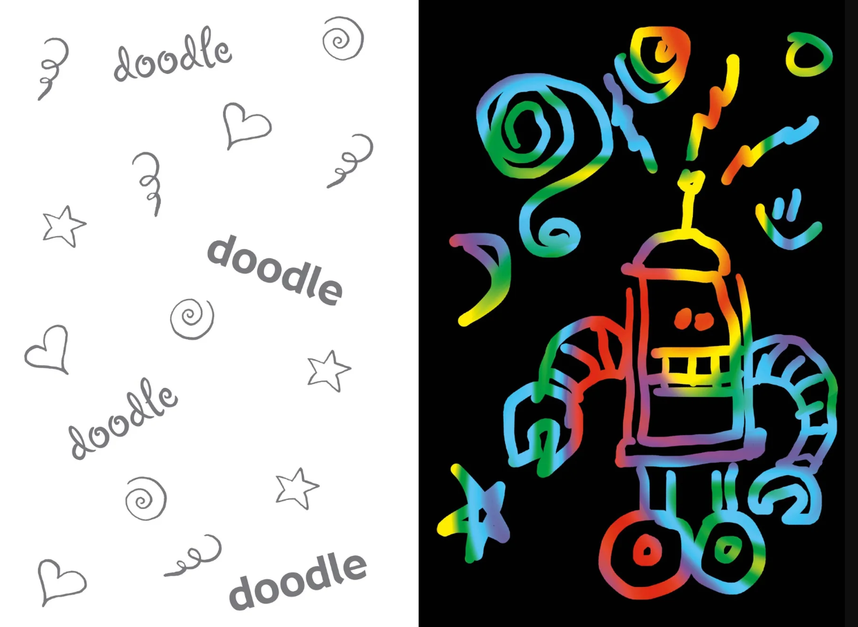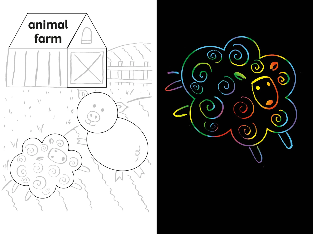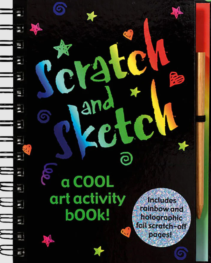 Use the wooden stylus to scratch off the black coating on each page of this super-cool art activity book, and see colorful swirls or glittery foil appears like magic!