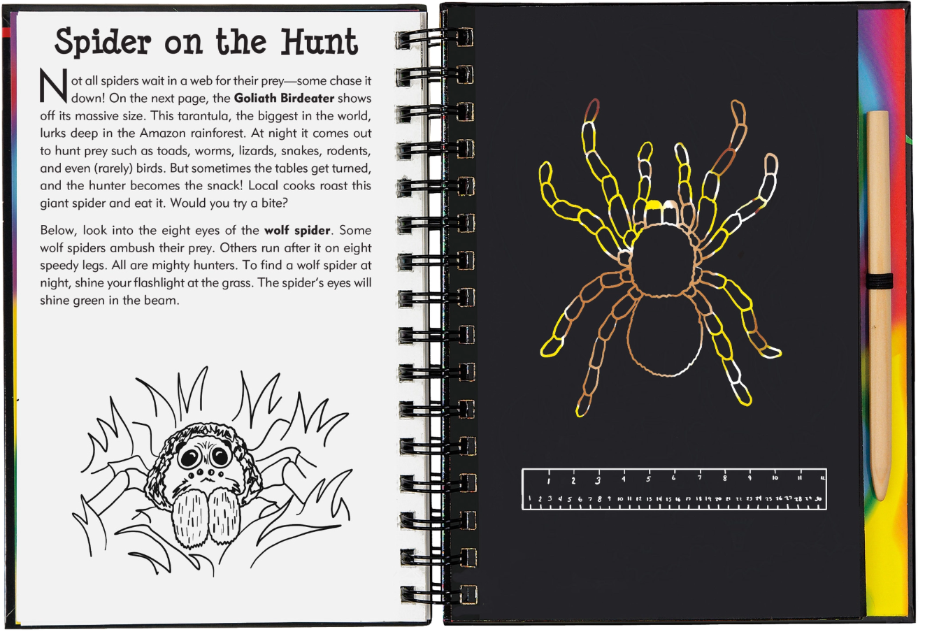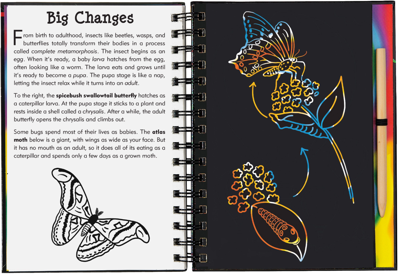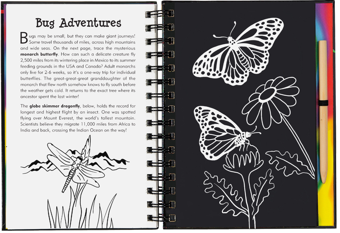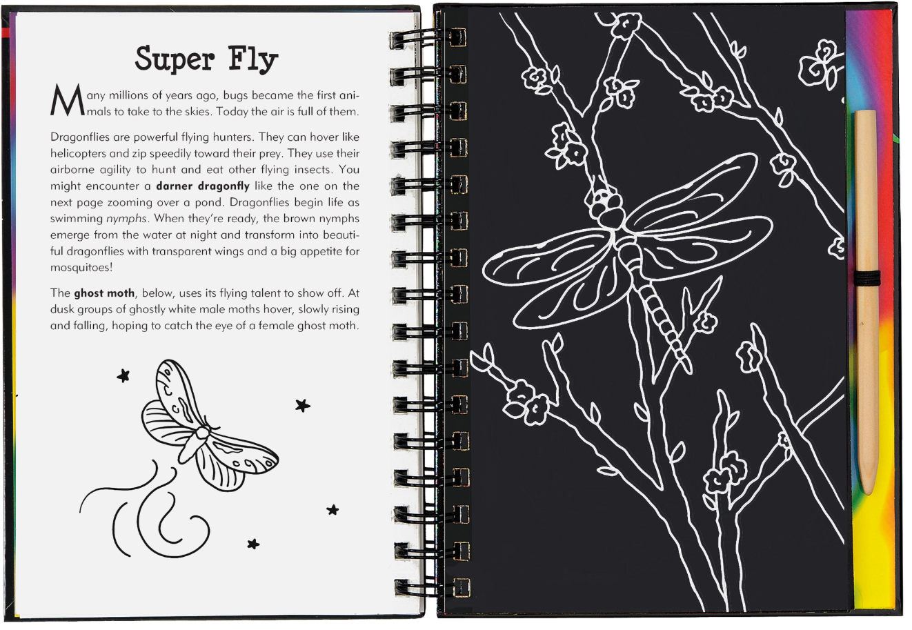 Scratch and Sketch your way through the world of bugs! Find out why a grasshopper is like a catapult and which dragonfly has flown to the top of Mount Everest. Check out a termite mound as big as a house and see what leaf cutter ants do with all those leaves. From wolf spiders on the lawn to giant millipedes in East African forests, discover the secret lives of bugs!