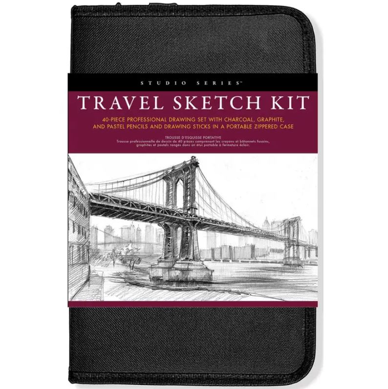 Attractive, portable, all-in-one 40-Piece Travel Sketch Kit lets you draw anytime, anywhere!