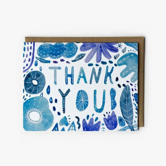 Blue Watercolor Thank You Greeting Card by Honeyberry Studios