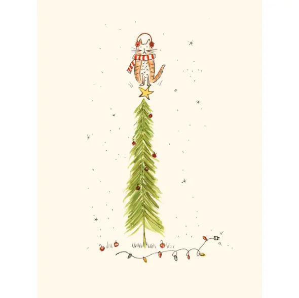 Cat on Tree Holiday Greeting Card by Sweet Julie Marie