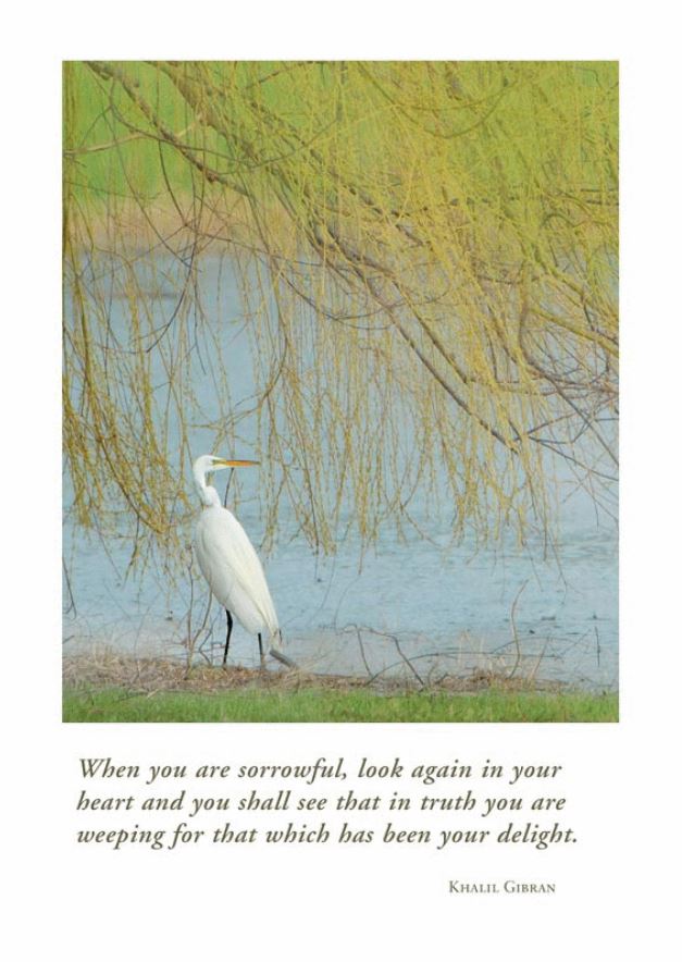 When you are sorrowful, look again in your heart and you shall see that in truth you are weeping for that which has been your delight.