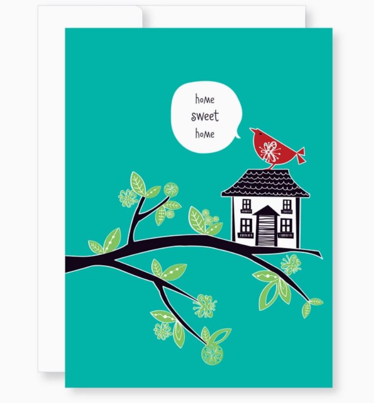 This 4.6" x 6.25" greeting card is silk-screen printed by hand. It comes with a coordinating envelope.