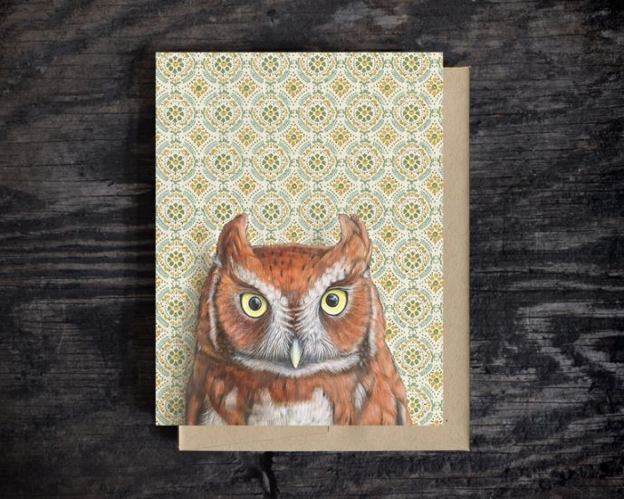 Screech Owl Blank Greeting Card by Emily Uchytil