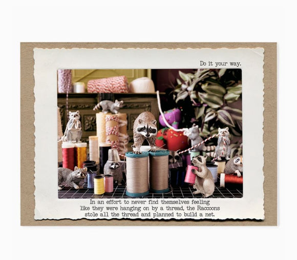 Raccoons Thread Motivational Greeting Card by Jamie Redmond