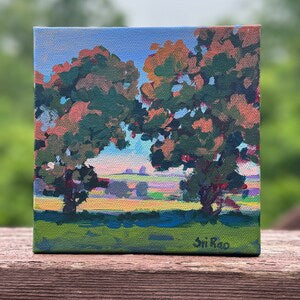 This landscape was painted with acrylics on canvas by Sri Rao of Iowa City, Iowa.