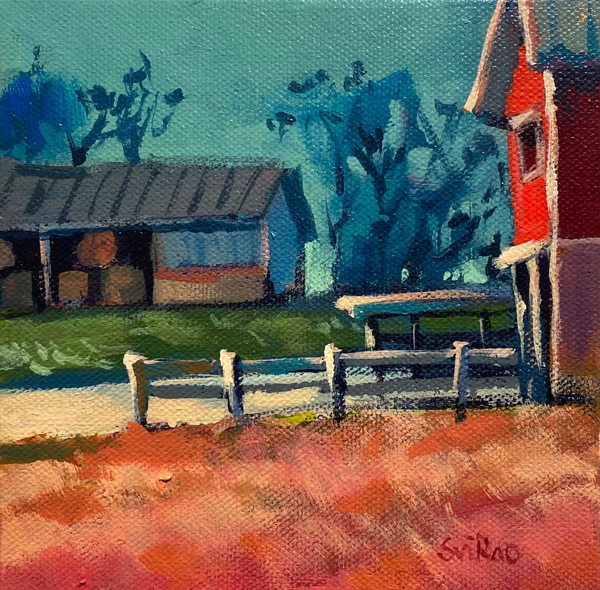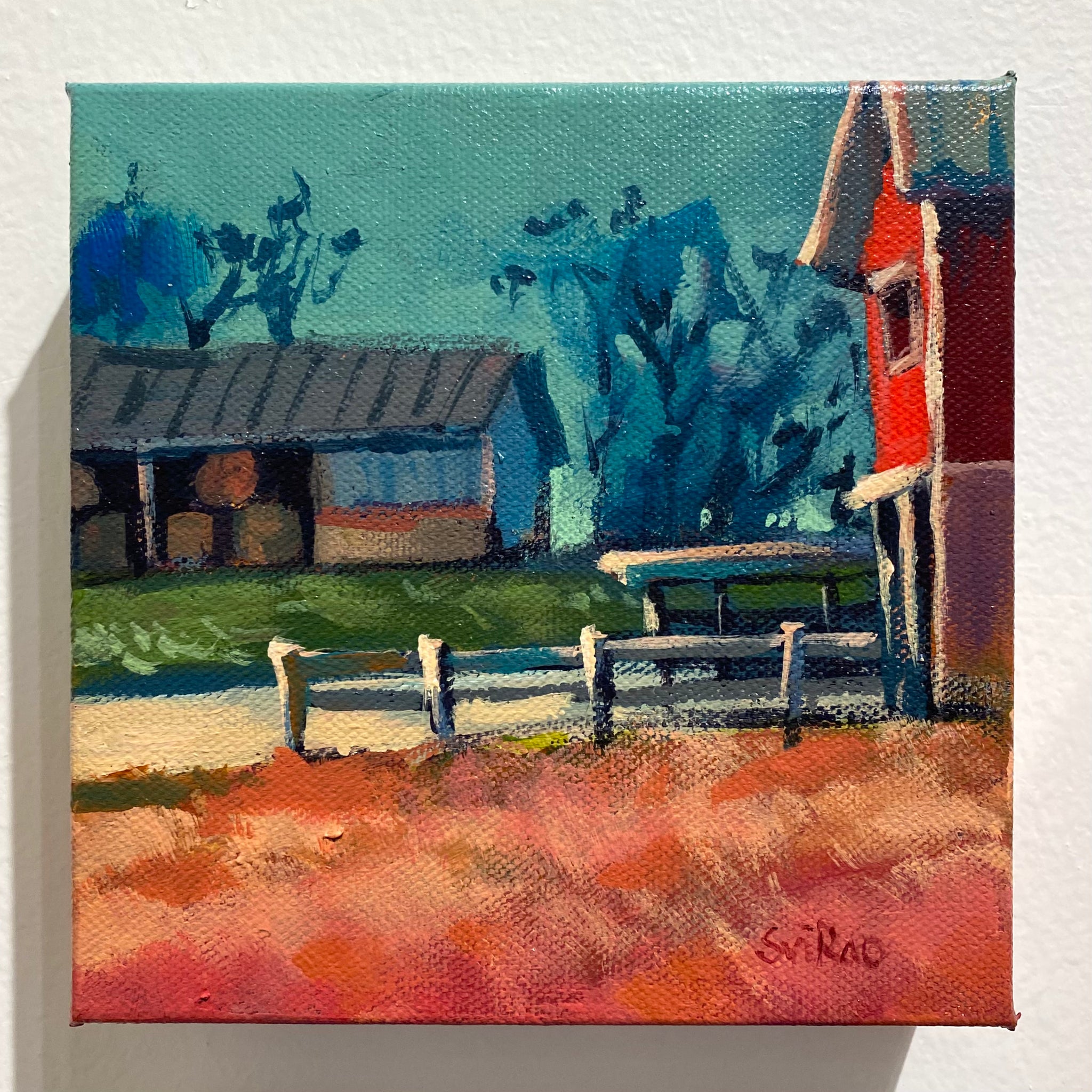 This landscape was painted with acrylics on canvas by Sri Rao of Iowa City, Iowa.