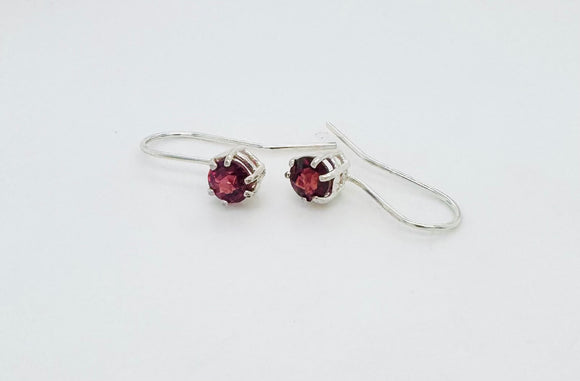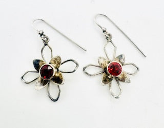 Silver, Brass and Garnet Post Earrings by Margie Magnuson