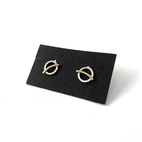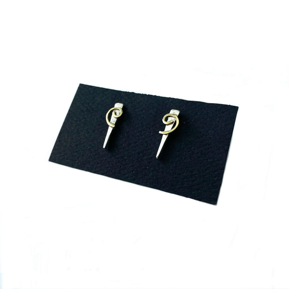 Silver and Brass Swirl Post Earrings by Margie Magnuson