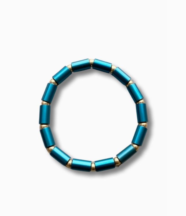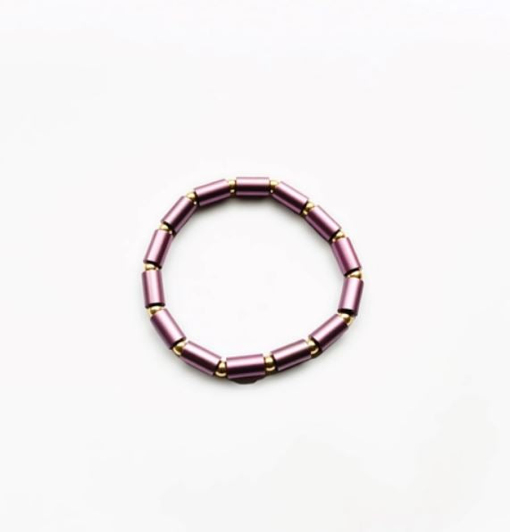 These bracelets are so beautiful... Stack as many as you like! They are hand beaded on elastic with alternating aluminum and hematite gemstone beads.