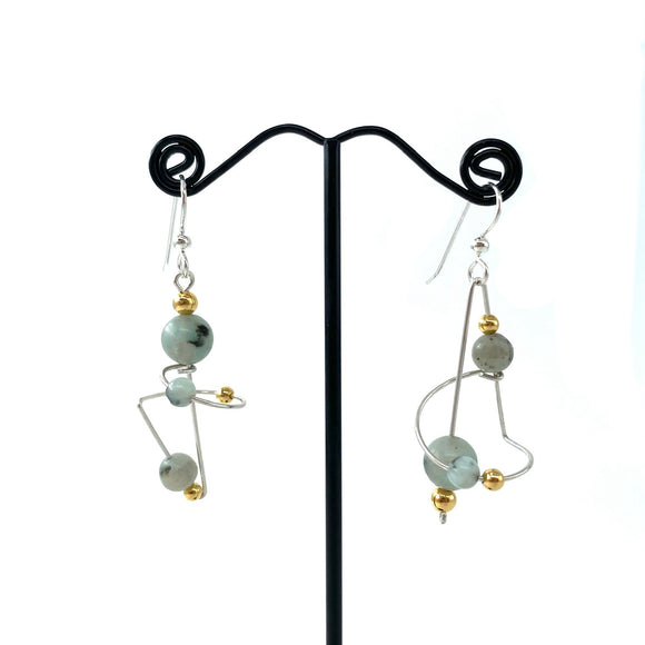 These earrings are made with sterling silver, gold-filled beads, and sesame jasper from New Zealand.