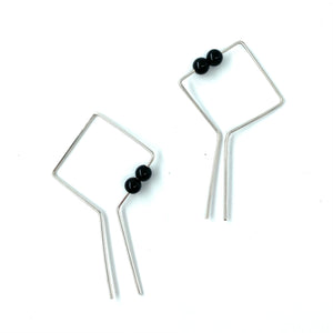 These earrings are made with sterling silver and black onyx beads.