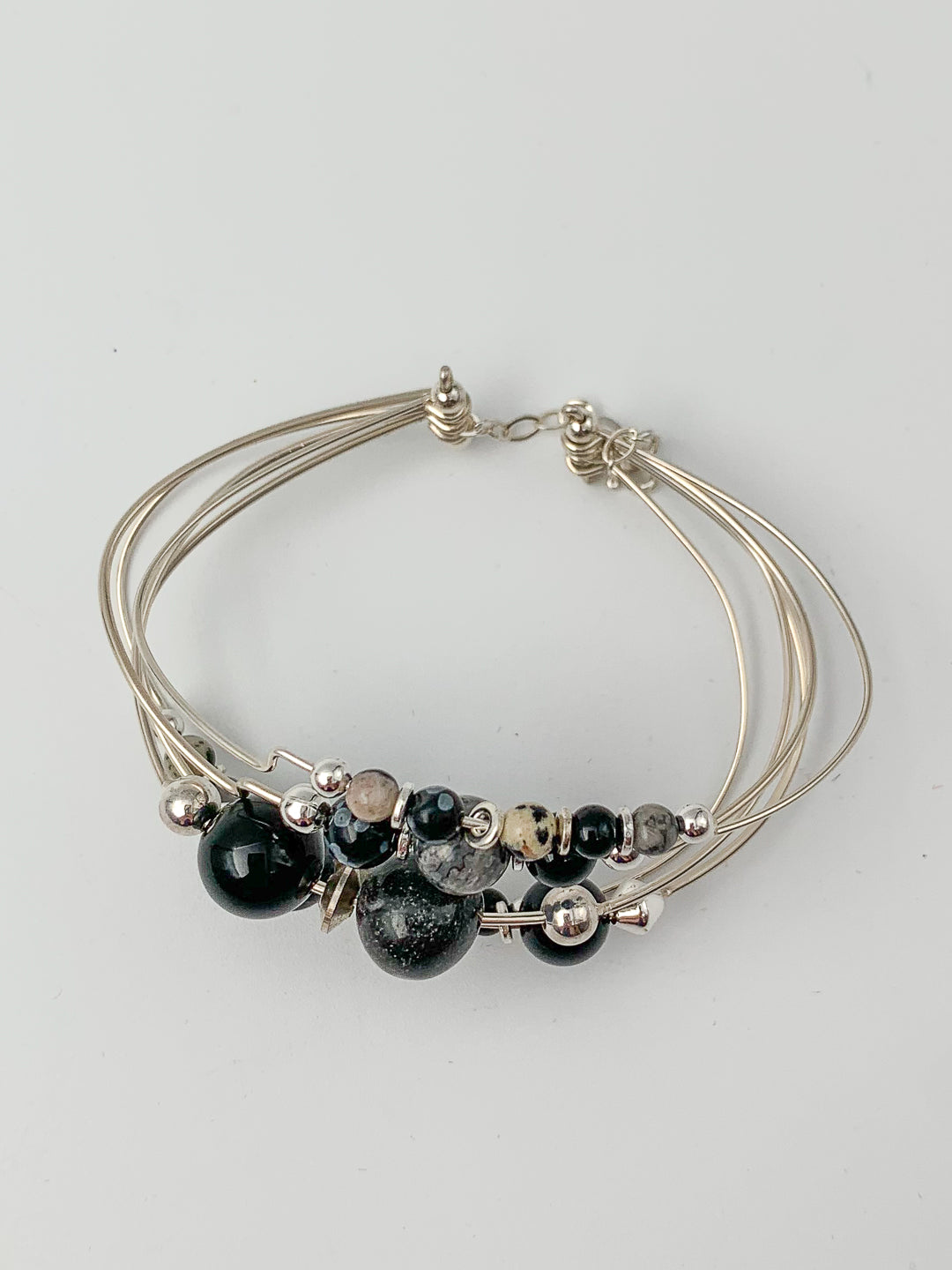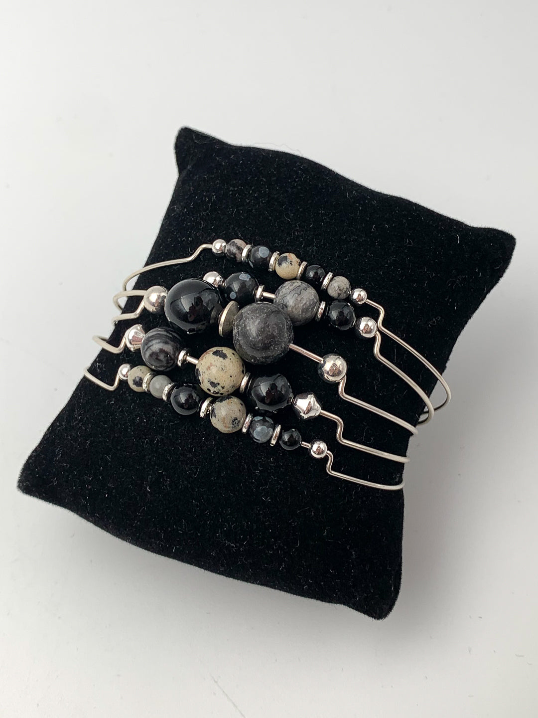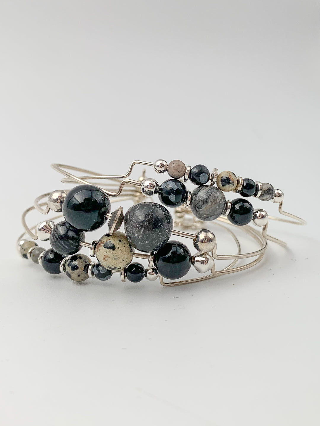 Made with sterling silver, Black Onyx, Black lava rock, and Dalmatian Jasper.