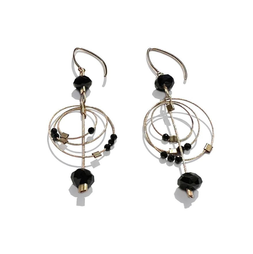Flexible, light woven stainless steel mini cable finished with nylon for a smooth feel. Each piece is hand-finished with little accents of sterling silver and/or 14k gold-filled as well as a choice of semi-precious stones. Posts or hooks are 14k gold filled or sterling silver. Hypoallergenic materials. Travel-Friendly with metal memory (the pieces are collapsible and can return to shape after a crushing).