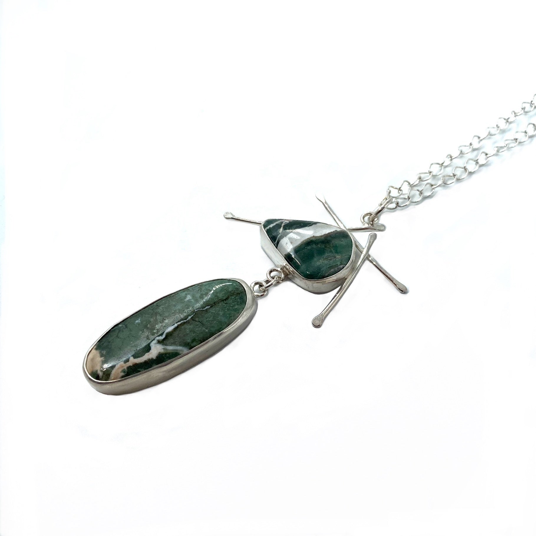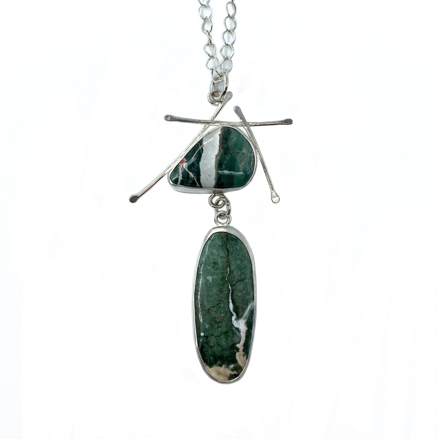 Total pendant size is approximately 3" long x 1 5/8" wide. Comes on an 18" sterling silver chain.