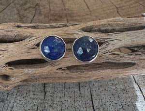 Rose cut lapis lazuli stones dazzle from within their bezel set sterling posts.