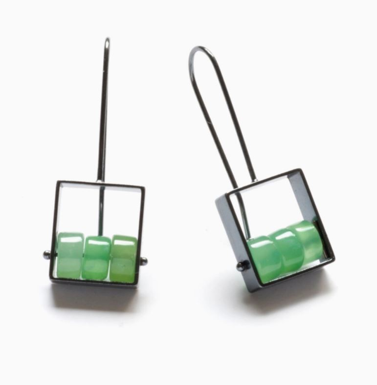 Primarily self-taught, I avoid traditional stone setting techniques and connections. My work is recognized by its unique method of capturing stones within metal frames creating negative space as an integral part of the composition. The use of thin wires to hold the elements together is another non-traditional technique allowing for movement and structural flexibility. A combination of unique materials and methods results in a joyful piece of wearable art. All the work is handmade using sterling silver, 18k gold bimetal, and semi-precious stones and minerals.