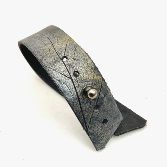 Dark Platinum Oak Leaf Leather Cuff by Platypus Max