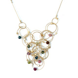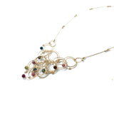 Crafted with meticulous attention to detail, this necklace boasts interlocking, small chain links punctuated with faceted rondelles, creating a mesmerizing mesh-like chain pendant. This unique construction adds depth and texture to the necklace, catching the light with every movement and drawing attention to its intricate craftsmanship. The combination of stainless steel cable and sterling silver/14k gold fill hardware ensures durability and luster, making this necklace a timeless addition to your jewelry collection. Whether worn alone as a statement piece or layered for a personalized look, this necklace is sure to captivate with its elegant design and refined allure.