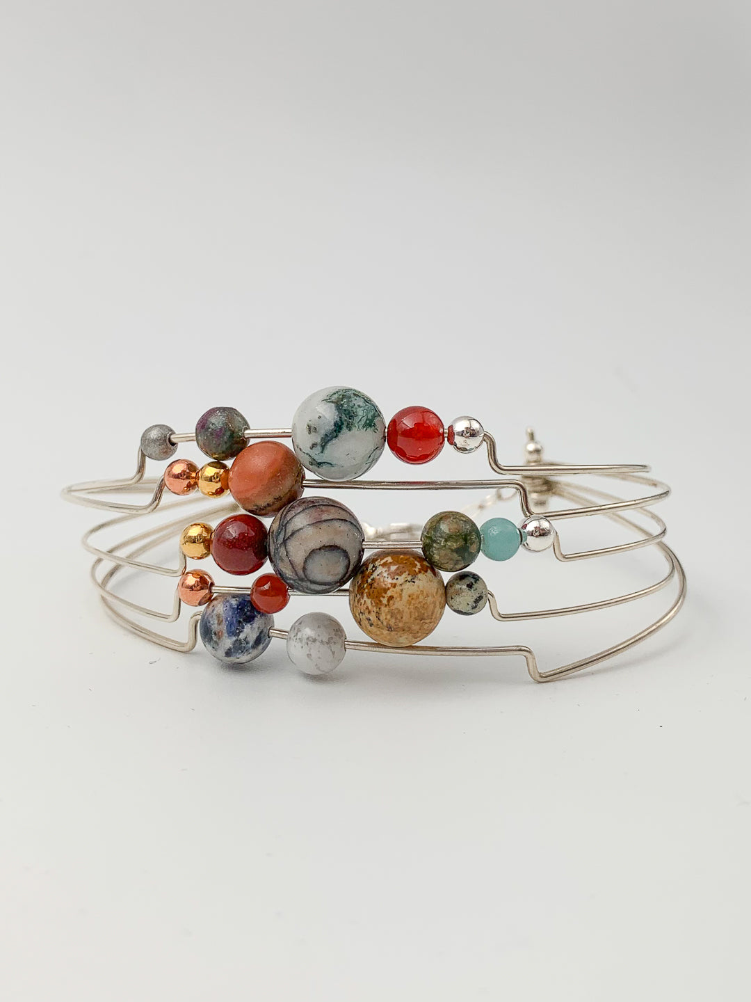 Made with sterling silver, gold-filled beads, copper beads, and various stones.