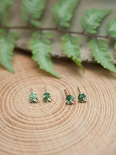 Tiny Stud Earrings with Green Spot Jasper by Brianna Kenyon