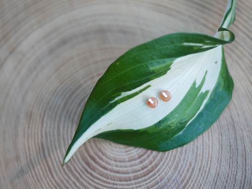 These sweet little stone stud earrings have sparkle and pop despite their very tiny size. Perfect for everyday wear! Made with wire and tiny stone beads made of light orange aventurine. The wire is hammered to give the earring a unique combination of textures.