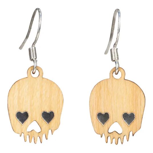 Twig Skull Lasercut Wood Earrings by Woodcutts