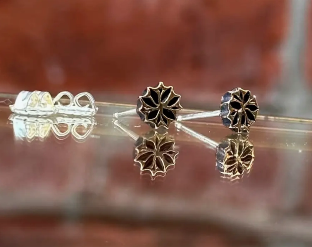Umbrella pods are sliced to reveal the flower at their core, which forms a beautiful stud earring.