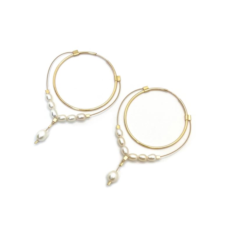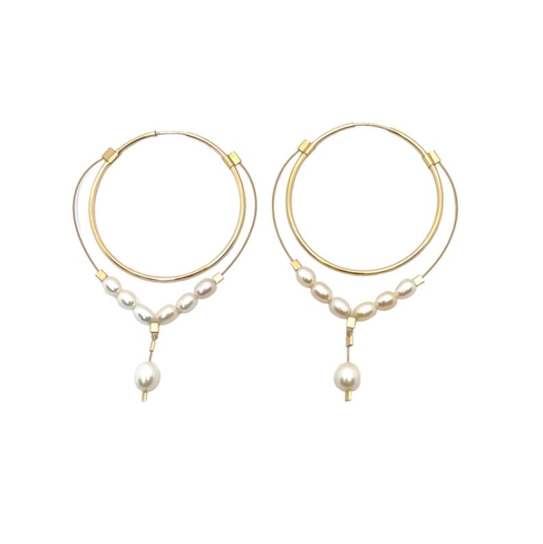 Flexible, light woven stainless steel mini cable finished with nylon for a smooth feel. Each piece is hand-finished with little accents of sterling silver and/or 14k gold-filled as well as a choice of semi-precious stones. Posts or hooks are 14k gold filled or sterling silver. Hypoallergenic materials. Travel-Friendly with metal memory (the pieces are collapsible and can return to shape after a crushing).