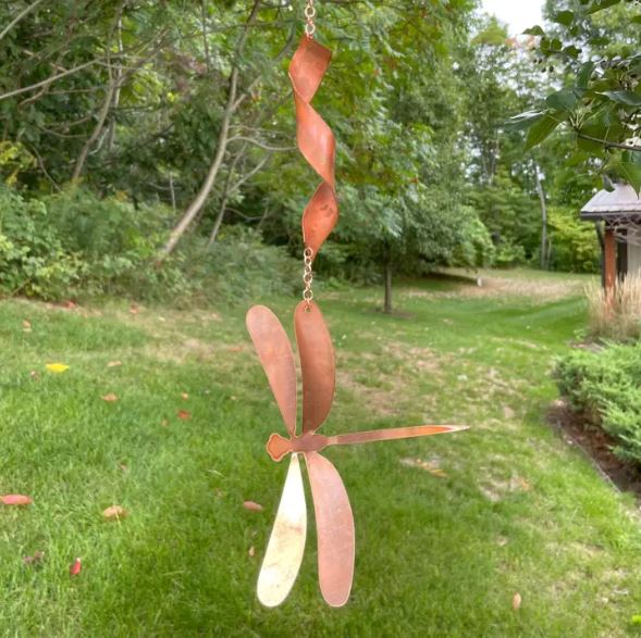 These copper dragonfly spinners are made of natural copper and will patina over time.