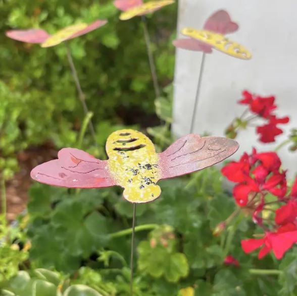Size: 3.75" wide x 2.25" long bee on an 18" spike.