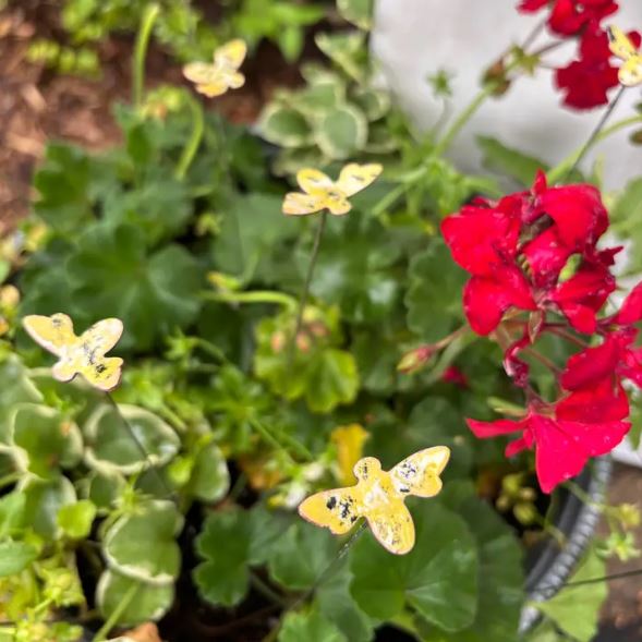 In 2006, Anne Cork invented a new product in her basement with wire and pliers. That product became Easy Arranger and has since sold over 1 million pieces. Along the way, Anne met and worked with the artist Lee Murrell. When he decided to retire he trained Anne and sold her his equipment. Now Anne and her team (Monica, Kelly, Leah, Dominic and Phil) create gorgeous copper and enamel flowers, butterflies, dragonflies, ferns etc. in the studio under the name Annabelle Noel Designs. We use a technique called torch fire enameling to create our items. They can be used indoors or out and since enamel is melted glass, it will never fade.