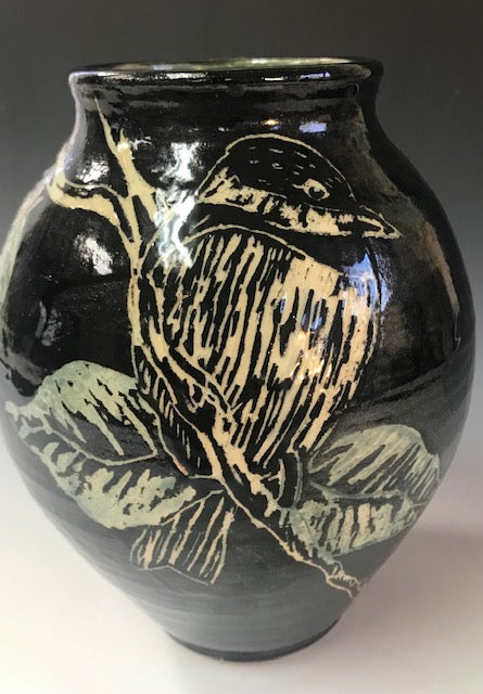 Vase with Chickadee by Nancy Briggs