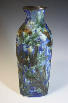 "The quintessential thing about our work is the atmospheric effects of iron in oxygen reduction at high temperatures. We use many layers of oxides, which give the brushwork a painterly depth when the oxides melt into the glaze at the highest temperature in the kiln. The botanical imagery is painted in a gestural manner likened to impressionism, so that the feeling of light and color and movement comes alive on the surface."
