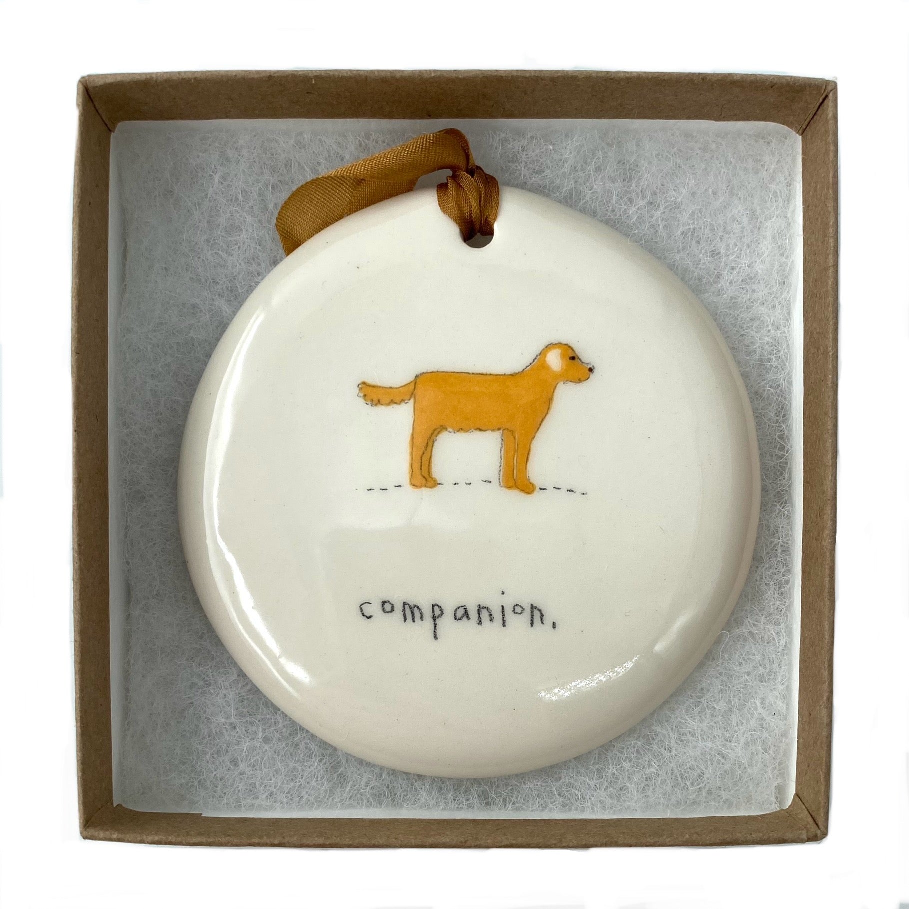 This slip-cast porcelain ornament features an image from an original colored pencil drawing by Beth Mueller of Barre, Vermont.