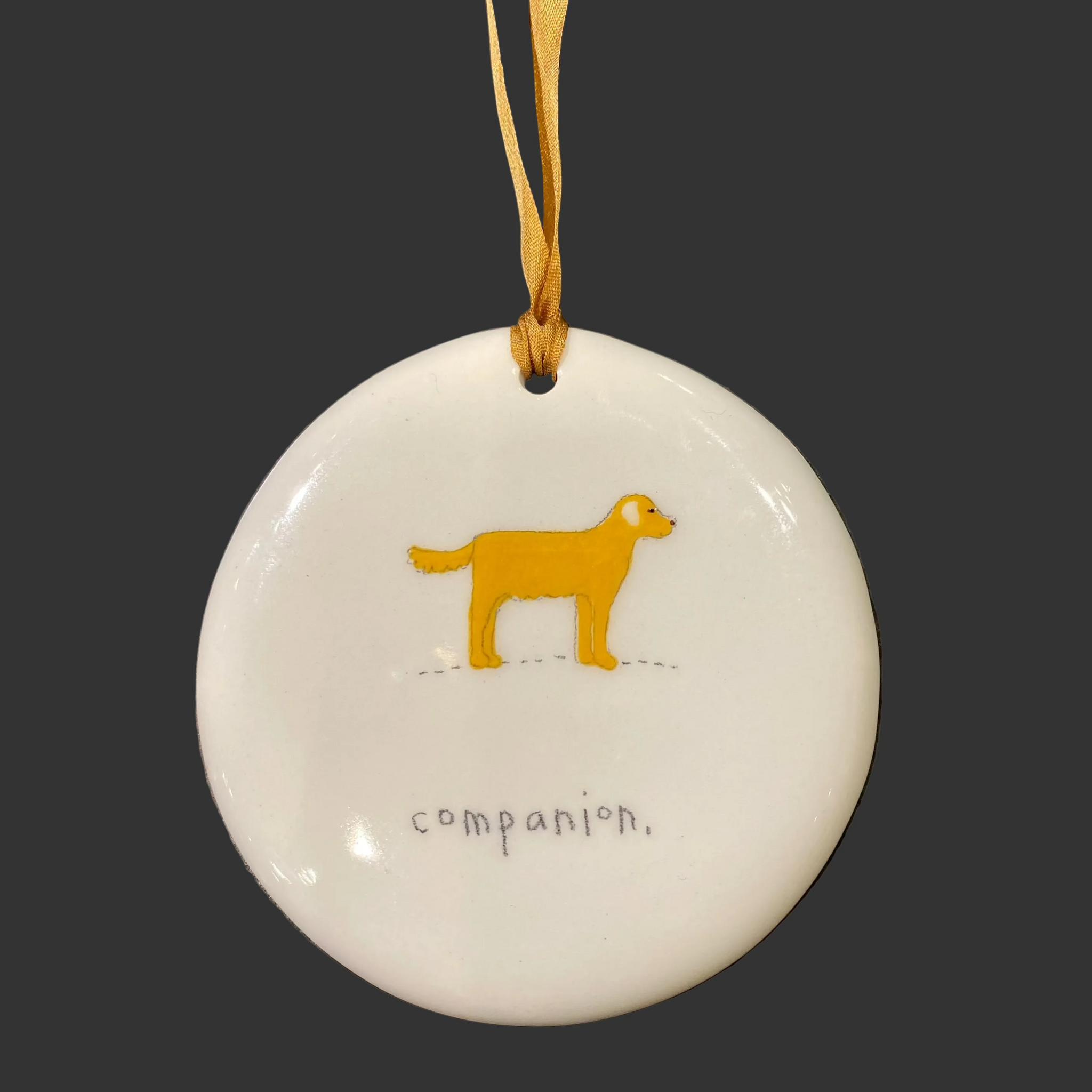 Measures approximately 3" in diameter and includes a hanging ribbon.
