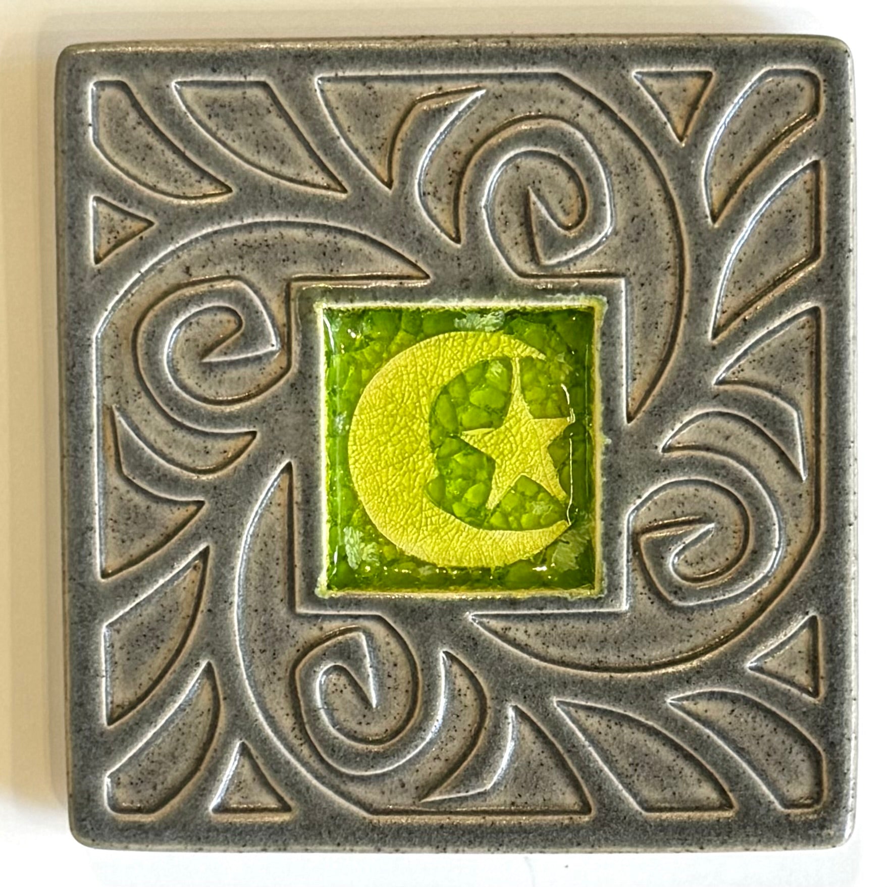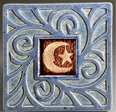 Macone Clay is the work of Michael, his two sons Miles and Clayton, and his son in law, Dan Temple. "We approach clay much like paper or canvas. To us, the pottery is just a function. The shapes and glaze effects are always secondary to the images and textures that we draw, engrave, then stamp into the clay." They are grateful to make a living doing what they love.