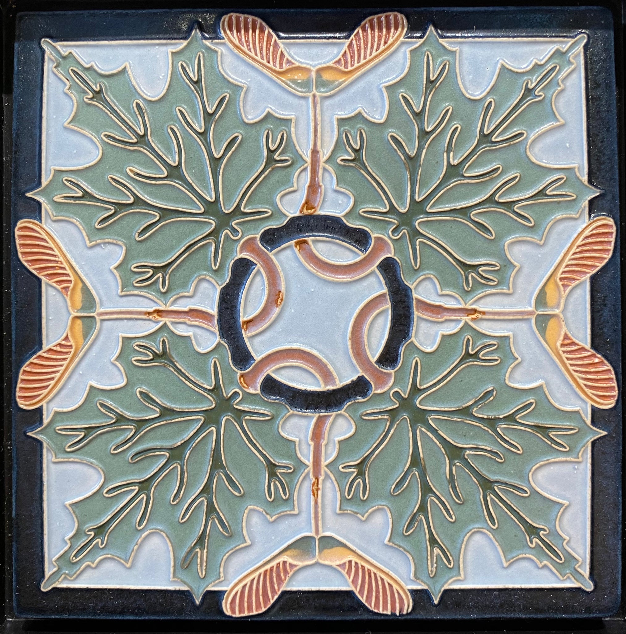 Glazing can be as simple as selecting one beautiful shade that showcases the intricate pattern of a Celtic tile. It can be complicated by masking out branches or leaves on an Arts & Crafts tile to allow them to be a contrasting color. Or a tile can have the many colors of a Moorish Pattern that need to be carefully applied with the most delicate of droppers. After glazing, the tiles are once again fired, this time at a higher temperature, to liquefy the glazes and bring them up to their final brilliance and durable imperviousness.