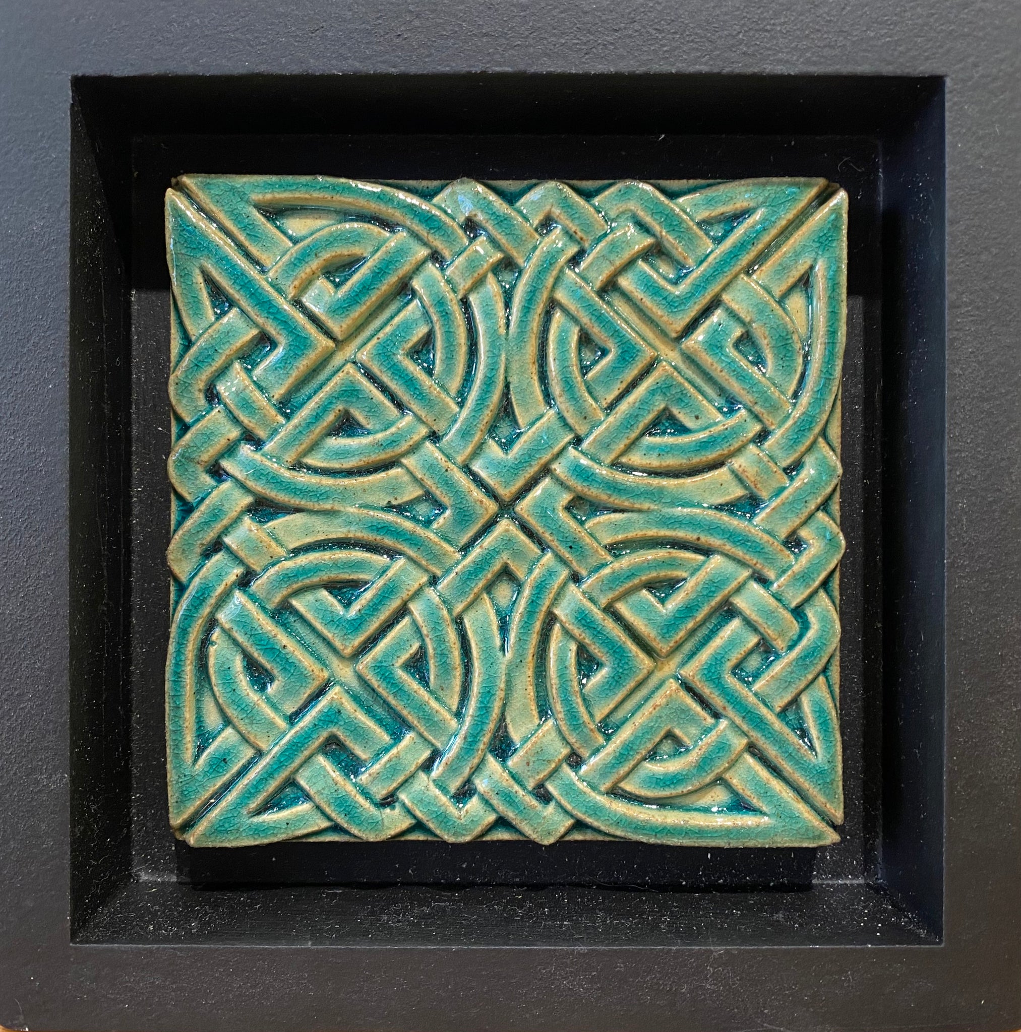 Shiny Green 1-Color Celtic Knots Framed Tile by Mike Skiersch